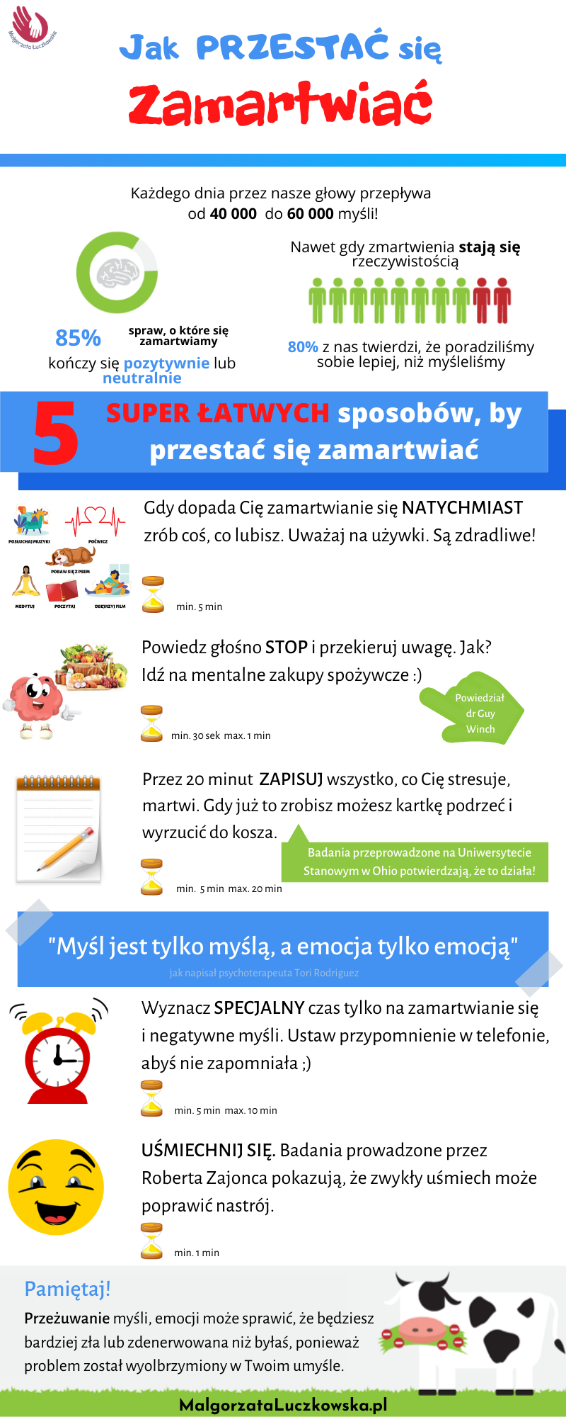 Od samego czytania NIC się nie zmieni. Zapewniam. Dlatego WYBIERZ JEDNĄ technikę. Tą, która jest Ci najbliższa i zacznij działać od razu. Rozwiązuj problem działając, a nie myśląc o nim. Zacznij działać. Rób cokolwiek, ale rób! Ważny jest chociaż jeden, najmniejszy krok.